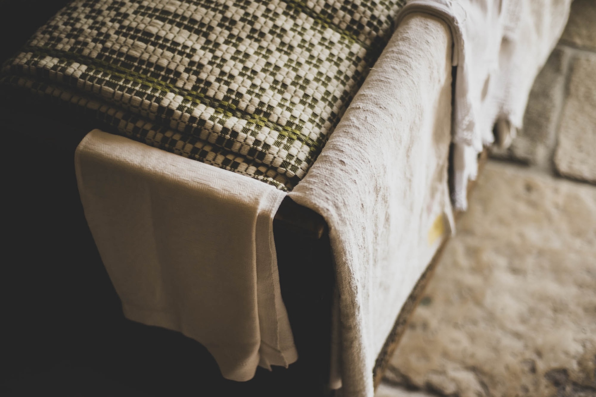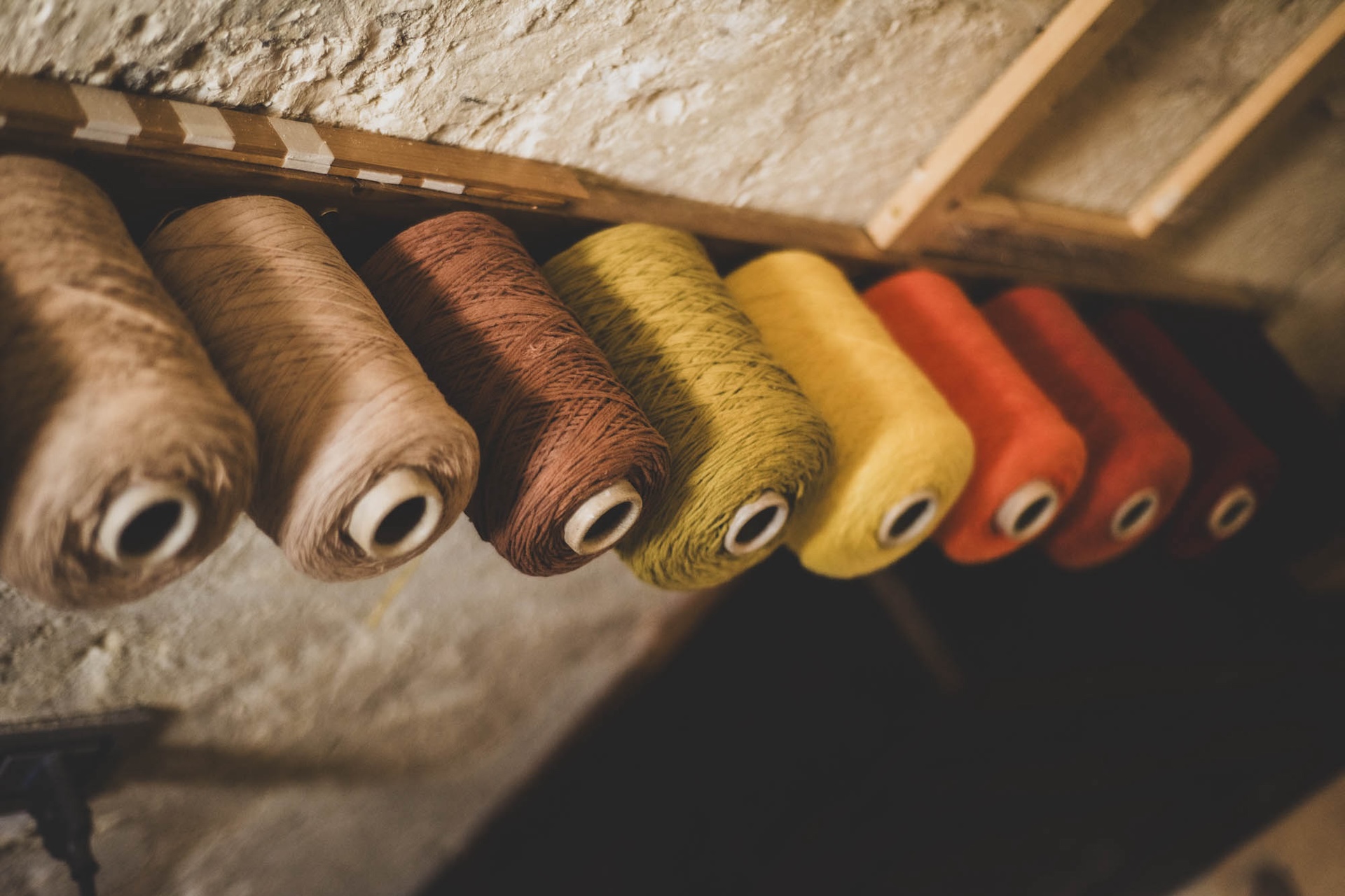 La Bottega dell’Artigianato di Sextantio Le Grotte della Civita di Matera richiama uno spazio domestico vissuto tipicamente dalla donna, con il grande telaio al centro.